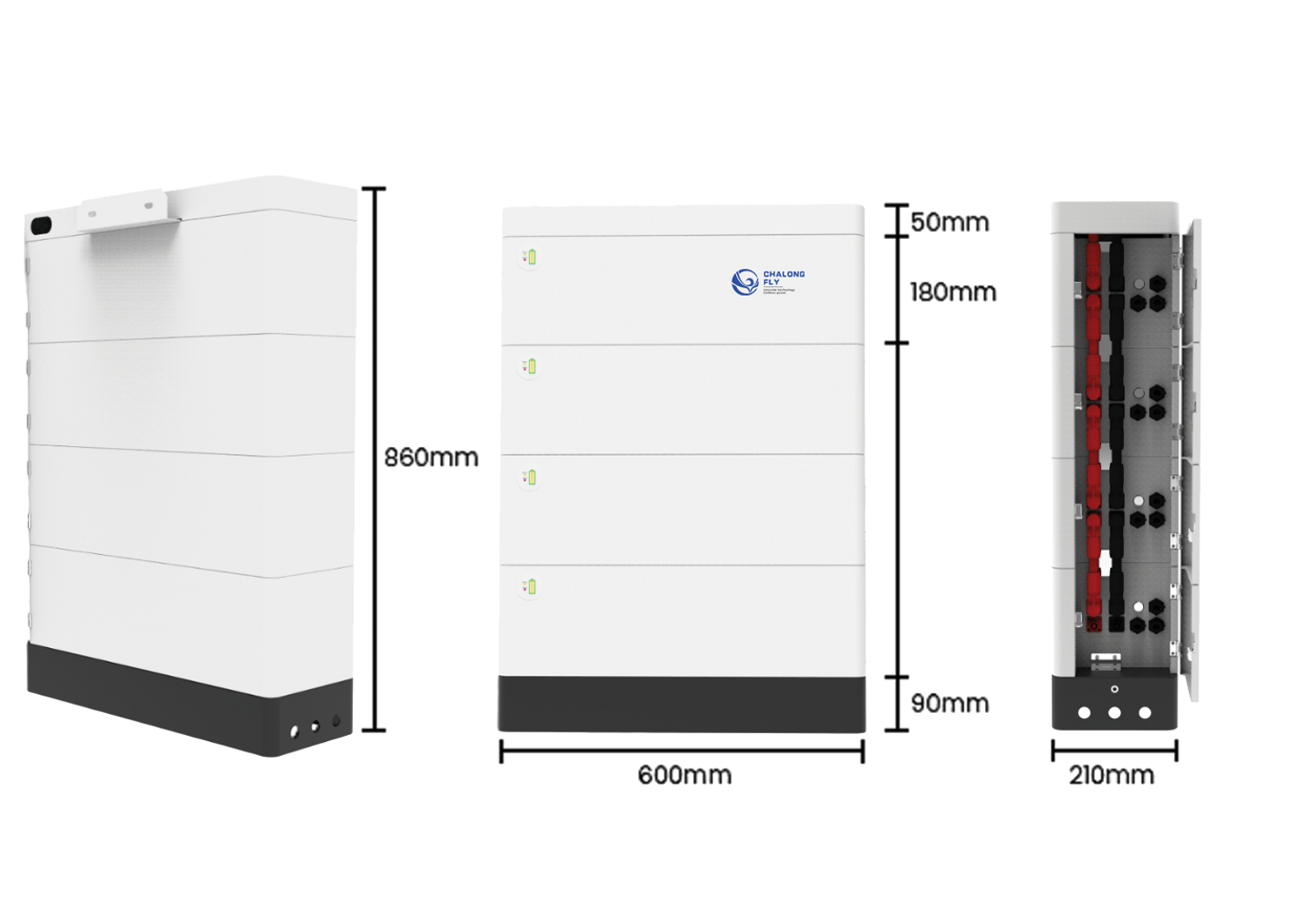 • Dimensions and internal layout of CF PowerStack 256 stackable LFP battery system for home energy storage